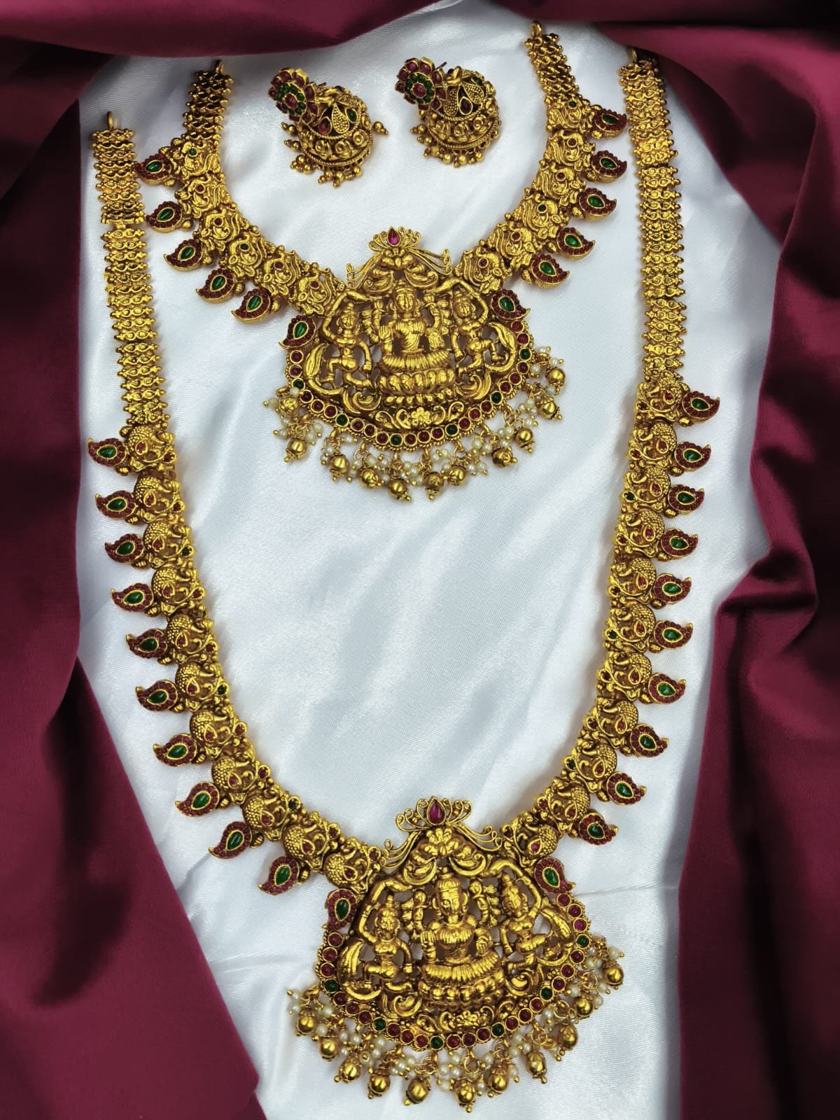 Contains: – 1 long Haram + 1 necklace + 1 pair of earrings
