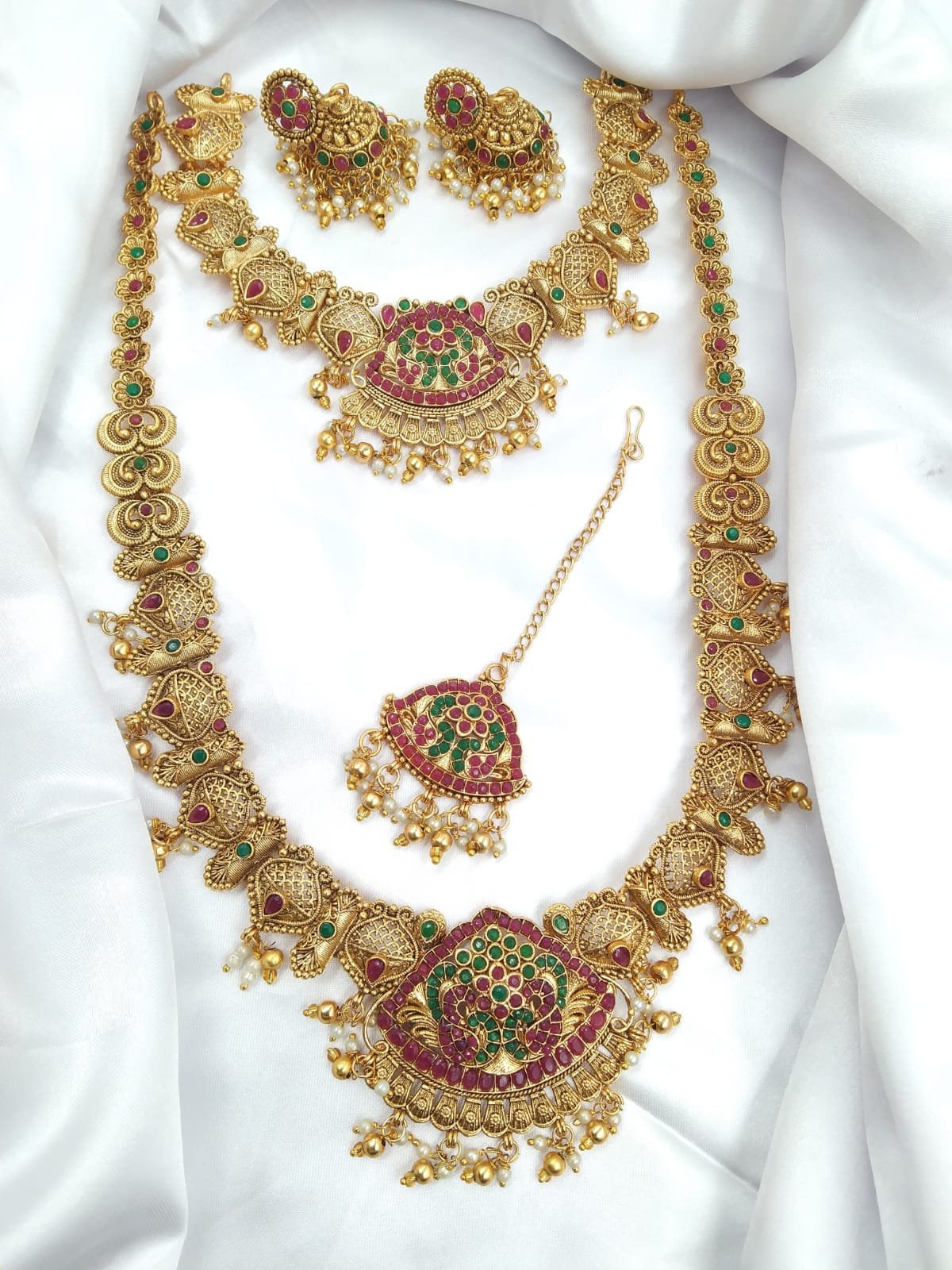 Contains: – 1 long Haram + 1 necklace + 1 pair of earrings