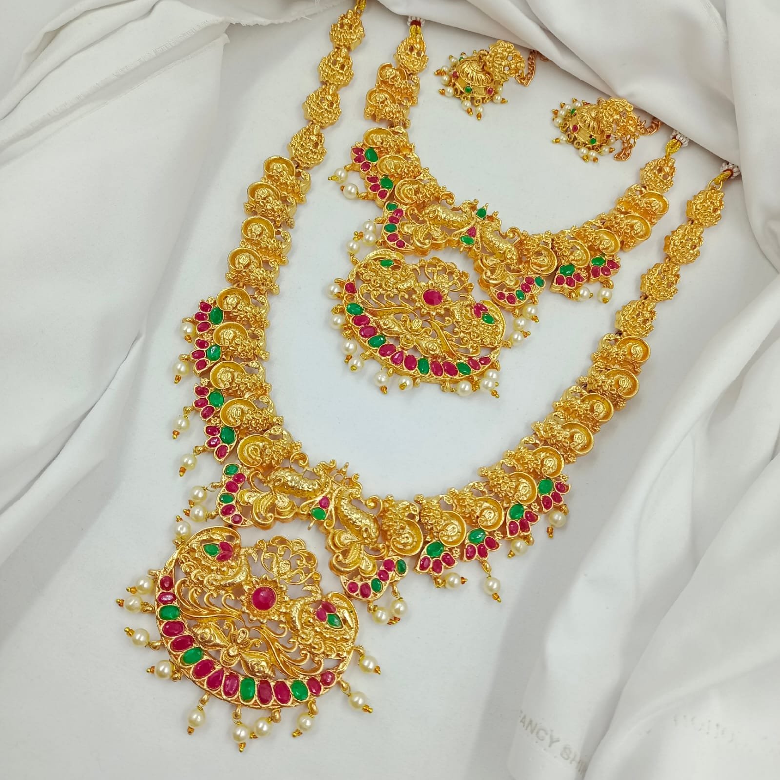 Contains: – 1 long Haram + 1 necklace + 1 pair of earrings