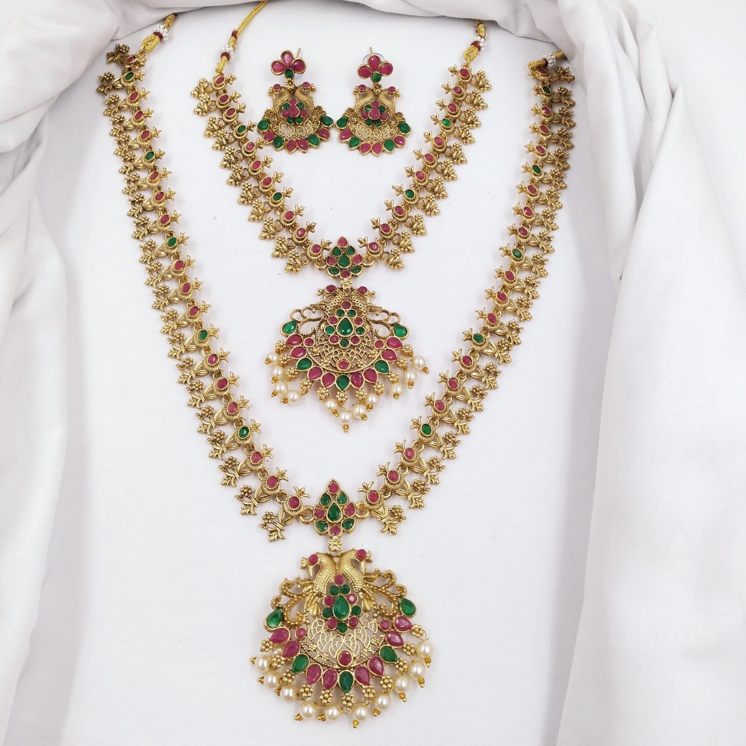 Contains: – 1 long Haram + 1 necklace + 1 pair of earrings