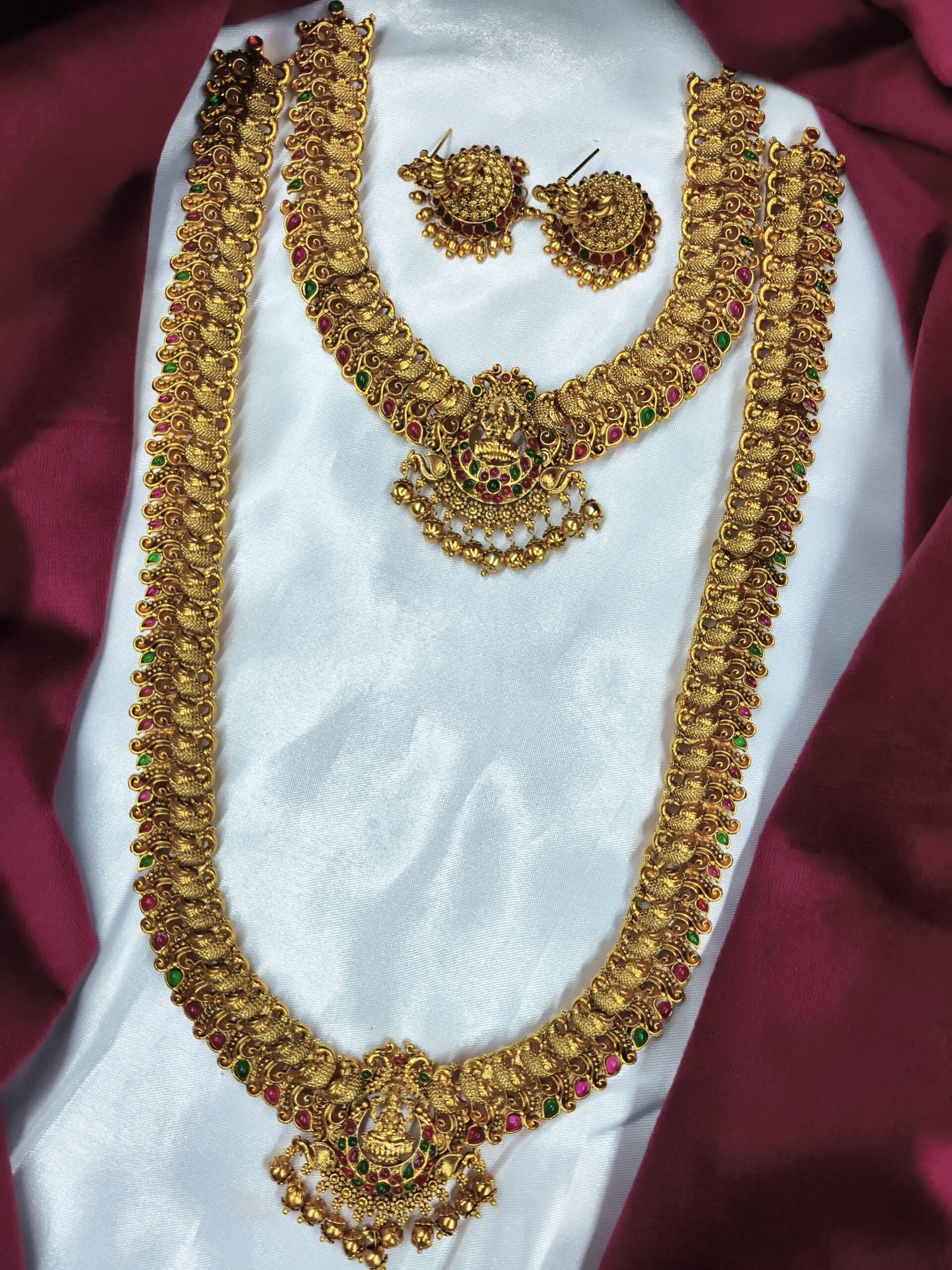 Contains: – 1 long Haram + 1 necklace + 1 pair of earrings
