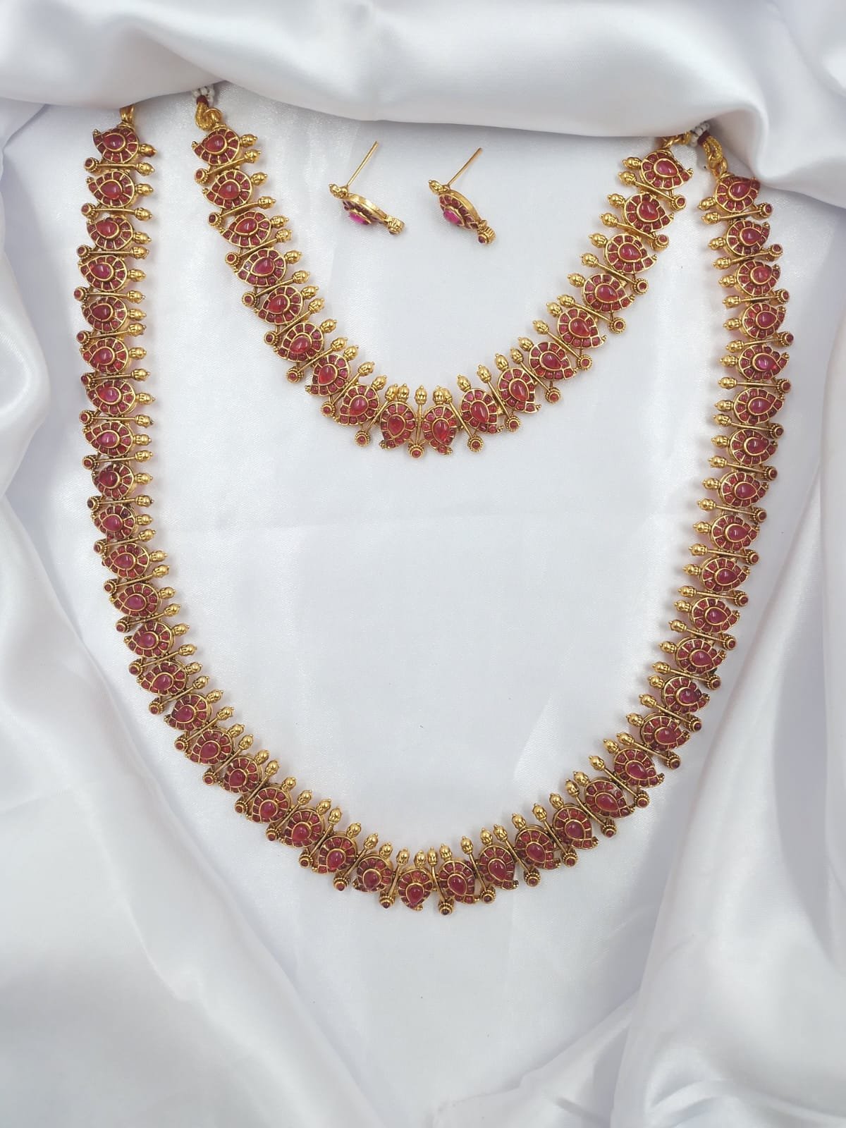 Contains: 1 long haram 1 necklace + 1 pair of Earrings