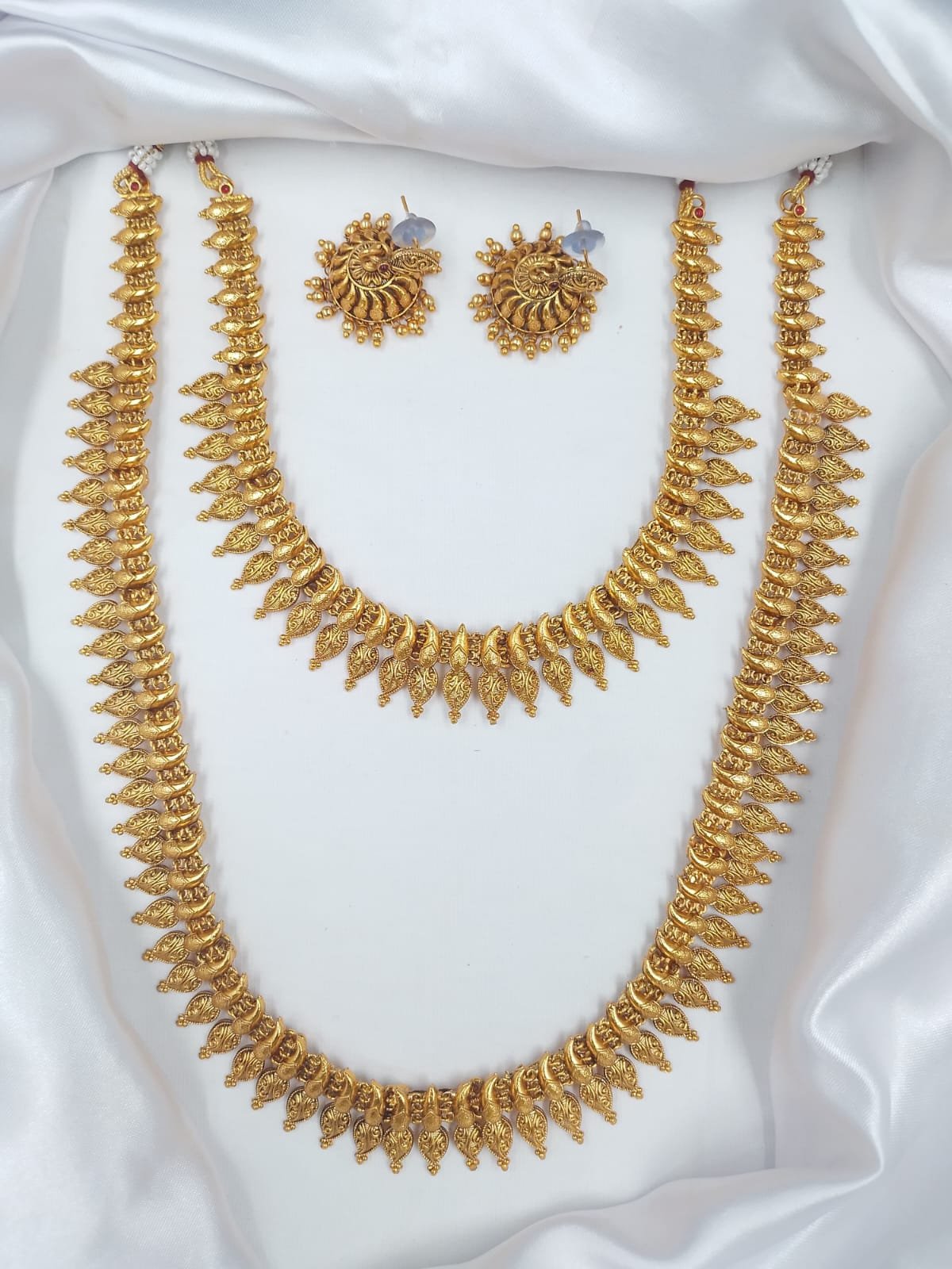 Contains: 1 long haram 1 necklace + 1 pair of Earrings
