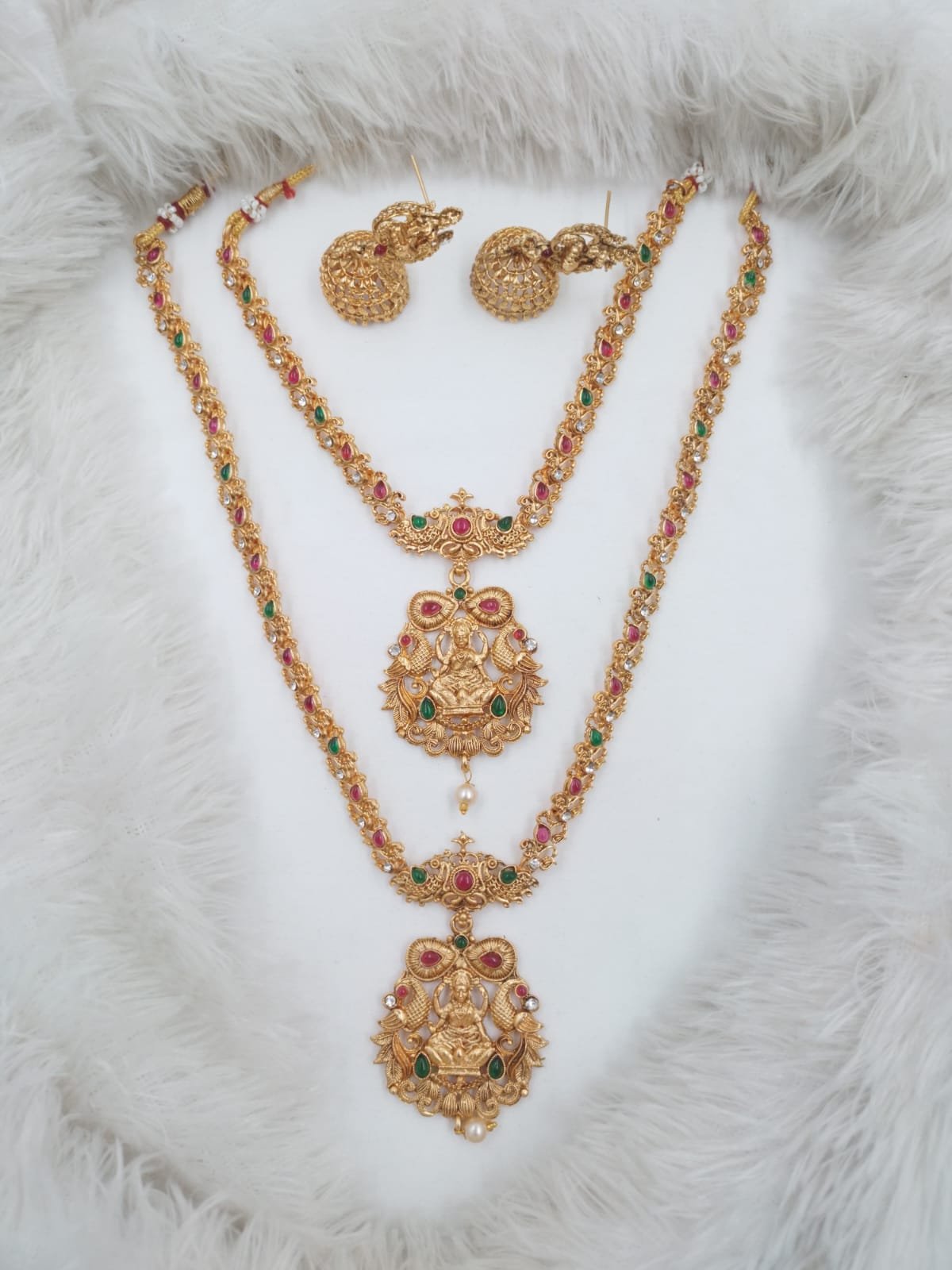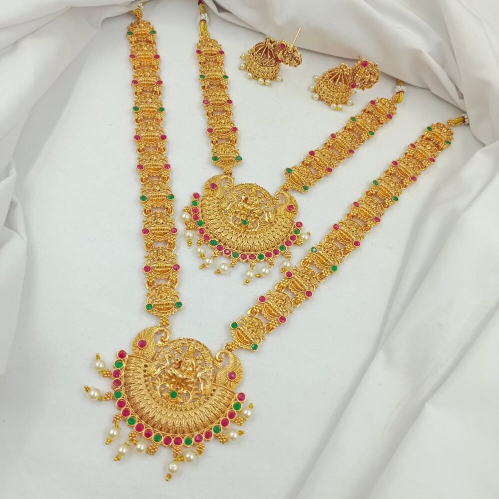 Contains: – 1 long Haram + 1 necklace + 1 pair of earrings