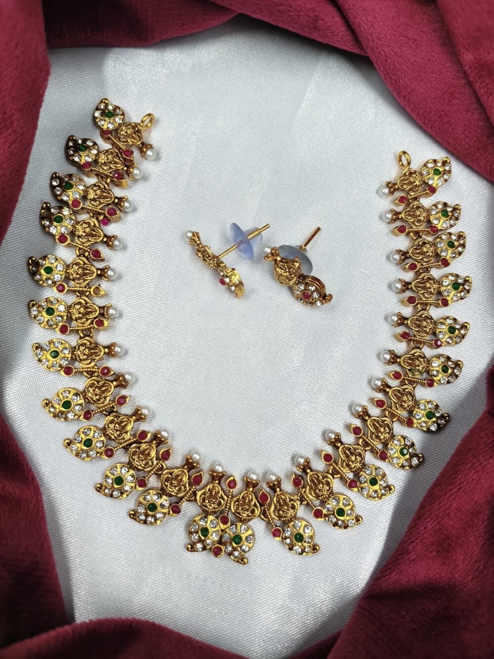 Latest design Antique traditional necklace set, This stunning piece of art with beautiful multicolor stones & unblemished pearls gives you a whole new look on your special day.