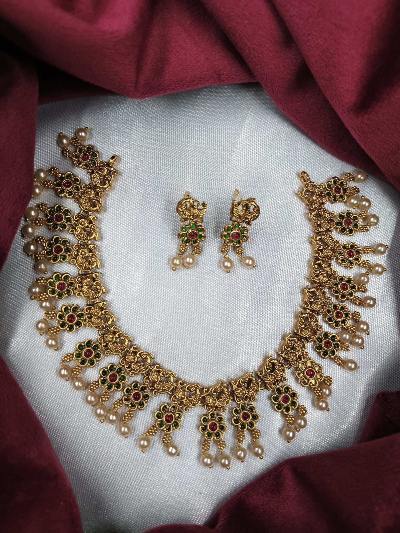 Latest design Antique traditional necklace set, This stunning piece of art with beautiful multicolor stones & unblemished pearls gives you a whole new look on your special day.